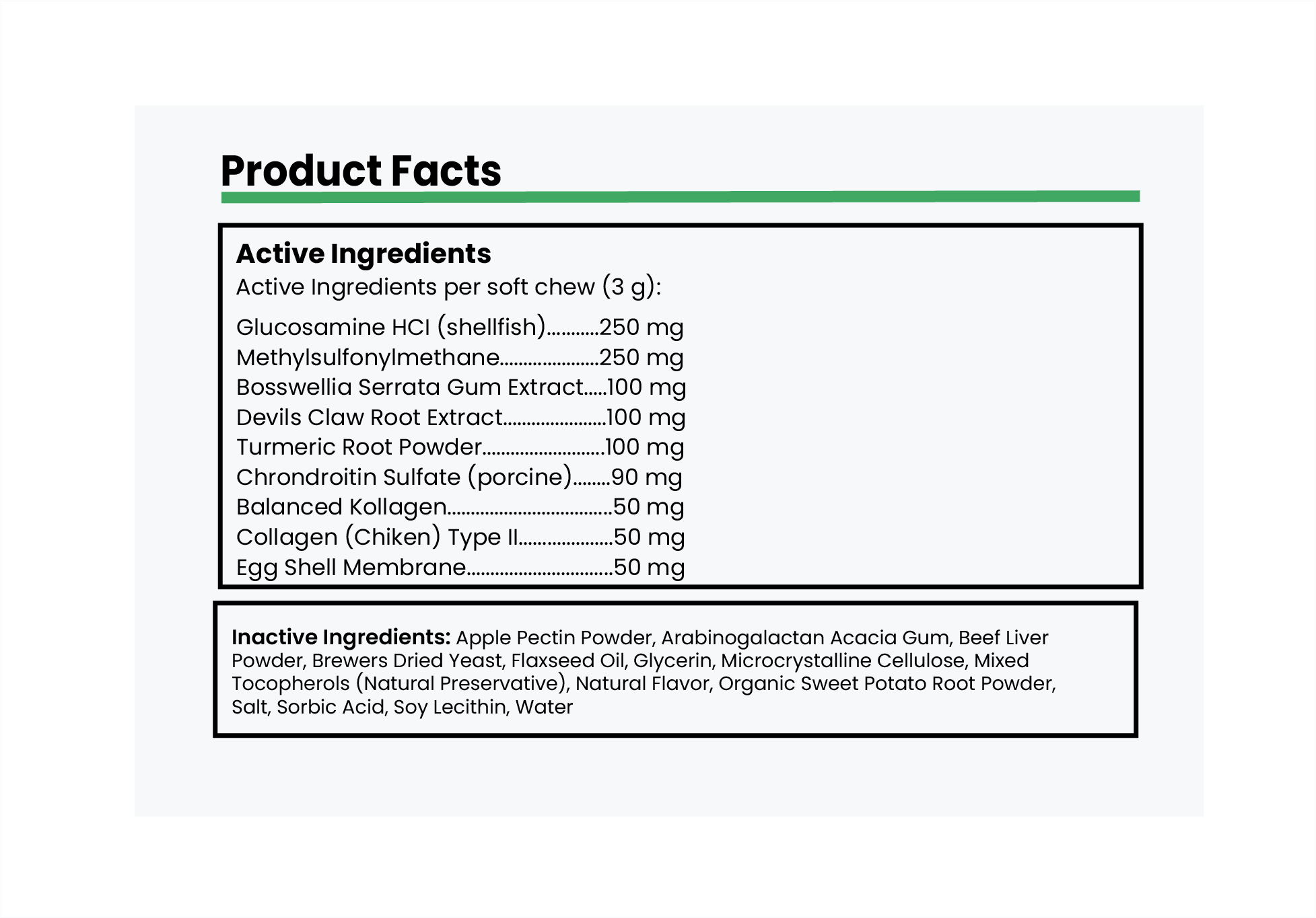 • Ideal for dogs with stiffness, aging joints, or high activity levels. • Can be paired with Multi for broad daily support.